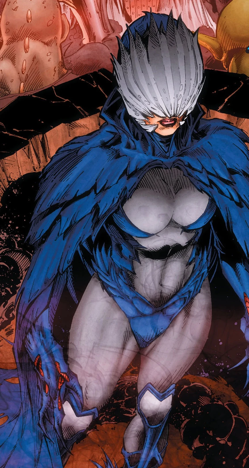 Raven was then captured by Brother Blood's minions to control Nightwing as part of Brother Blood's resurrection. The Titans rescued them both and prevented Brother Blood from returning. Raven donned a new white cloak to represent her being free from her father's influence.